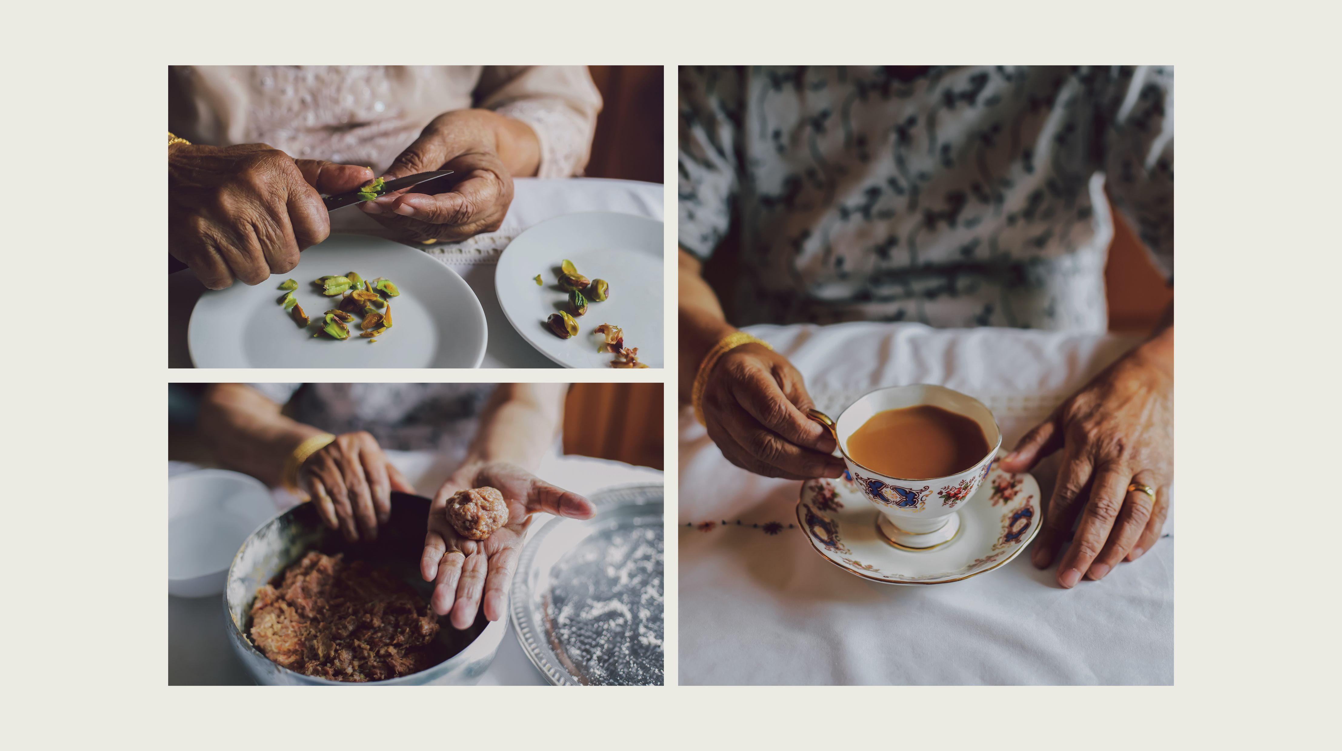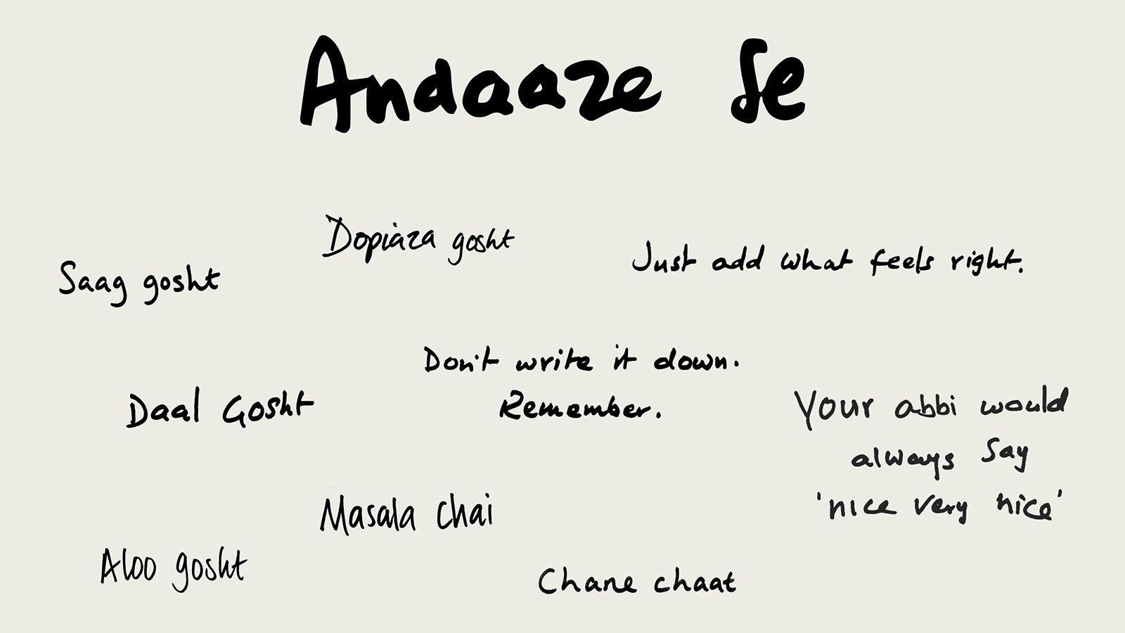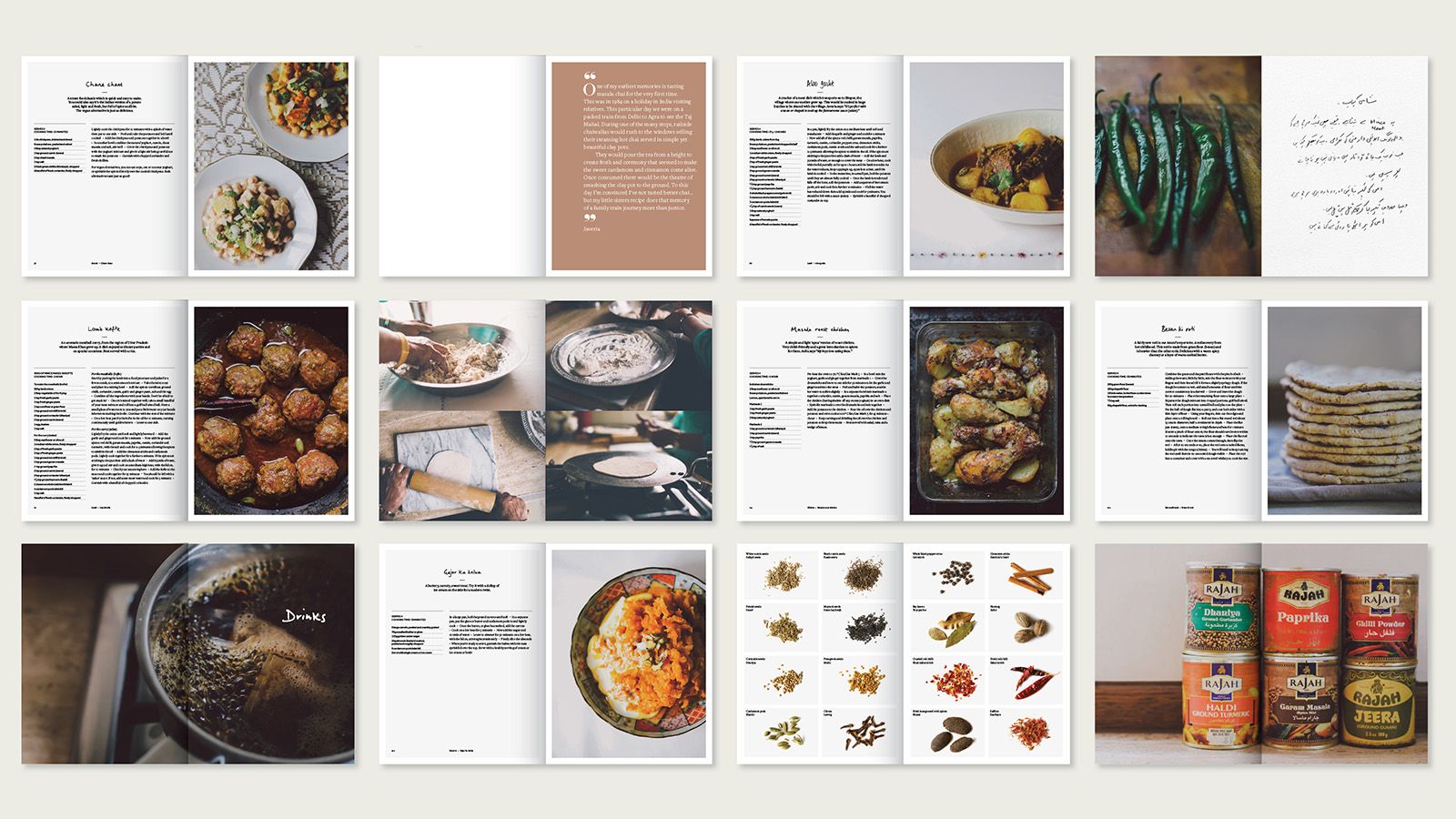 We wanted the book to capture more than just the recipes so we added our memories, stories and suggestions throughout — little snippets of our family life. Old photos, some our dad took on his Pentax camera and new photos of our mum cooking and sharing photos from the past. Ammi hand wrote some of her recipes in Urdu. We couldn't find a headline font we liked for the recipe titles, so we all hand wrote all of those. We've also used Urdu words throughout so the reader can learn a little about the language. All these layers have helped to create a unique book.
