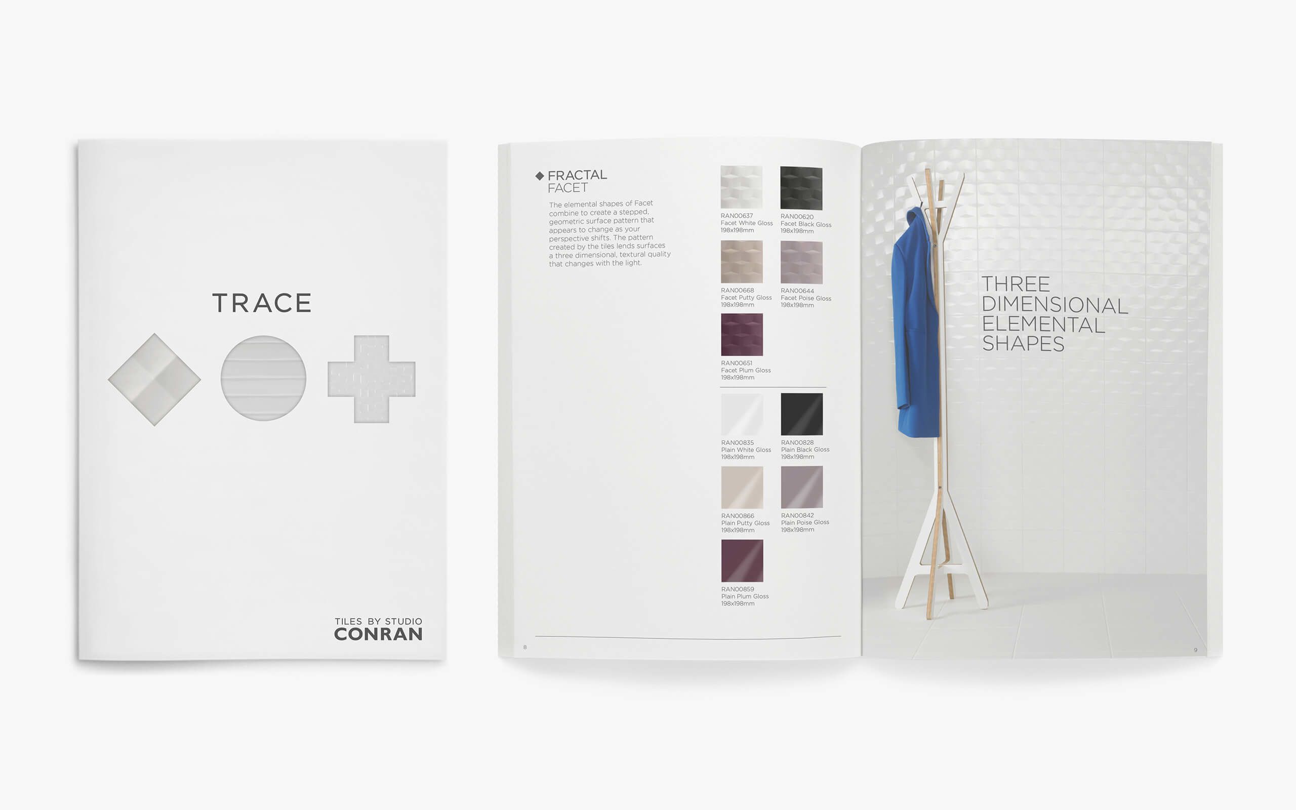 Commissioned by British Ceramic Tile. Trace is a collection of three dimensional patterned tiles inspired by the archetypes of nature and brought to life through touch, light and movement.